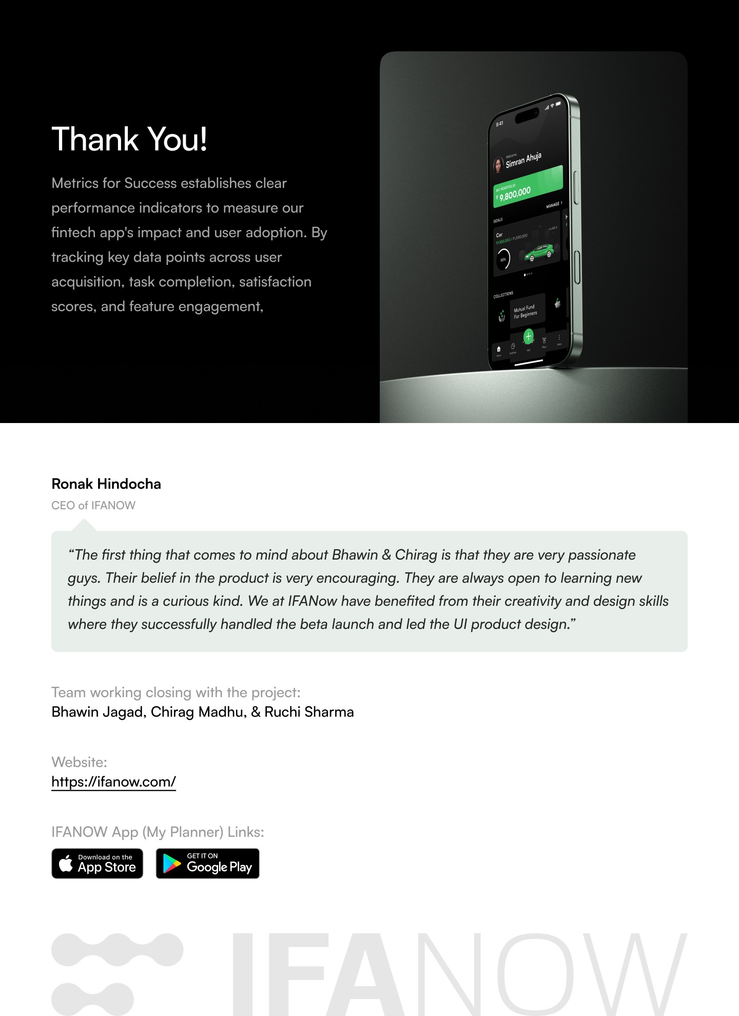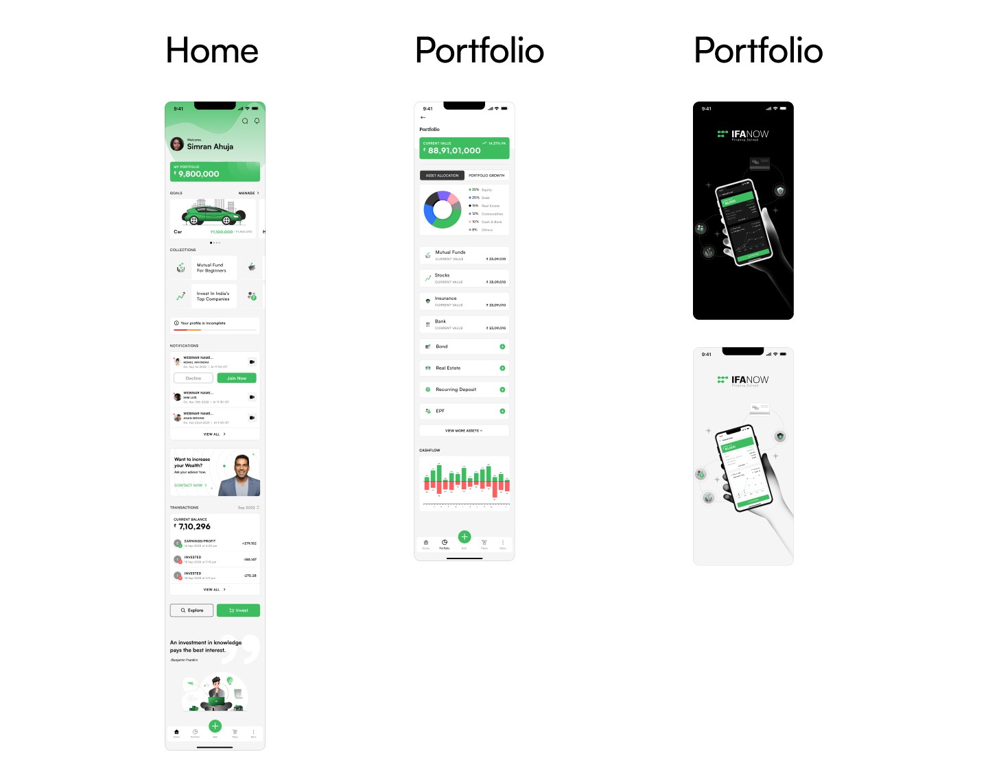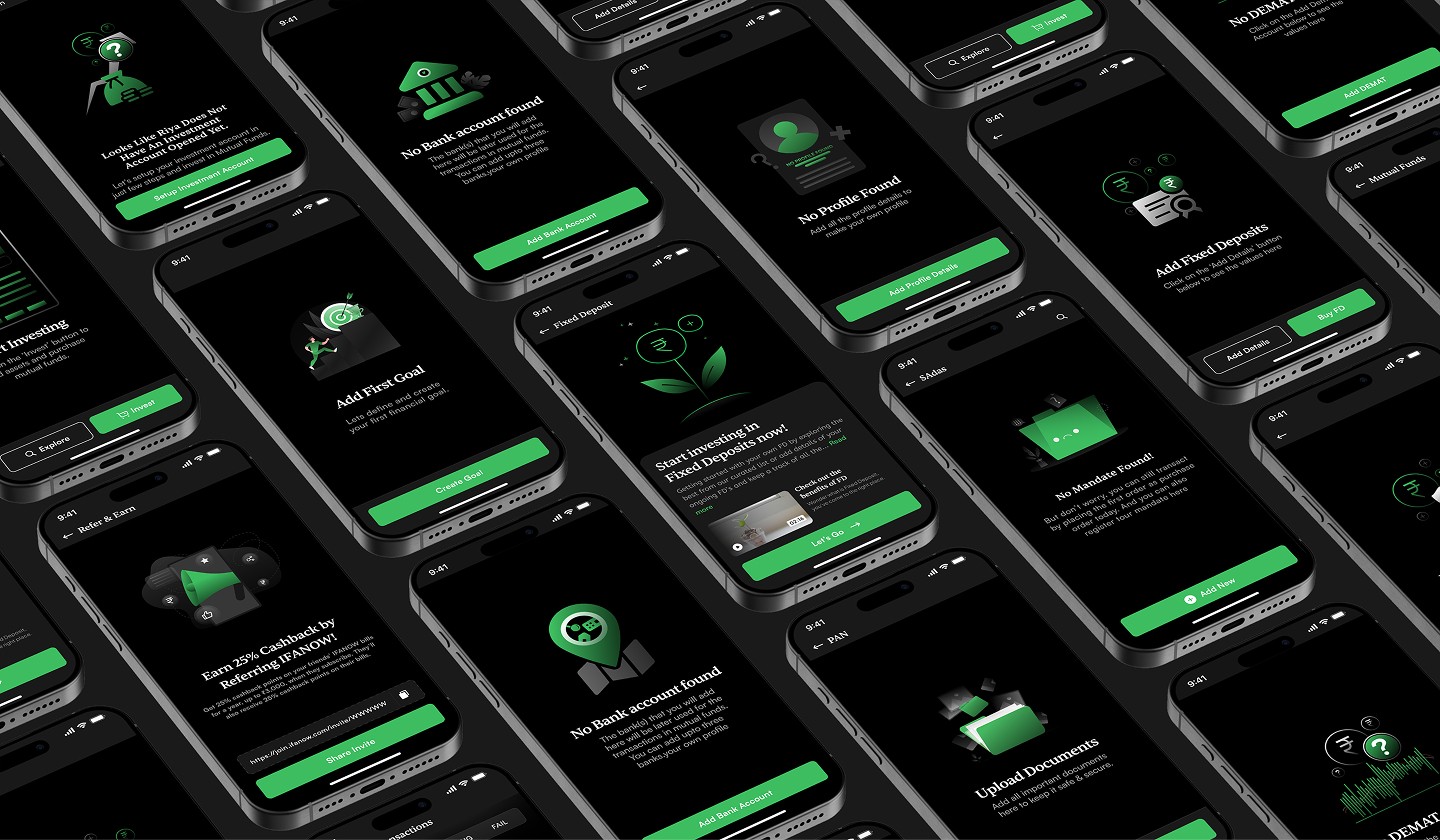 I collaborated on designing the IFANOW mobile app for both Android and iOS, creating a cohesive, user‑friendly interface from scratch to streamline mutual fund purchases and goal creation. Focusing on usability, we unified fragmented workflows, reduced errors, and improved efficiency through clear user flows, high‑fidelity screens, and interactive prototypes in Figma, while adhering to brand guidelines and partnering closely with stakeholders.