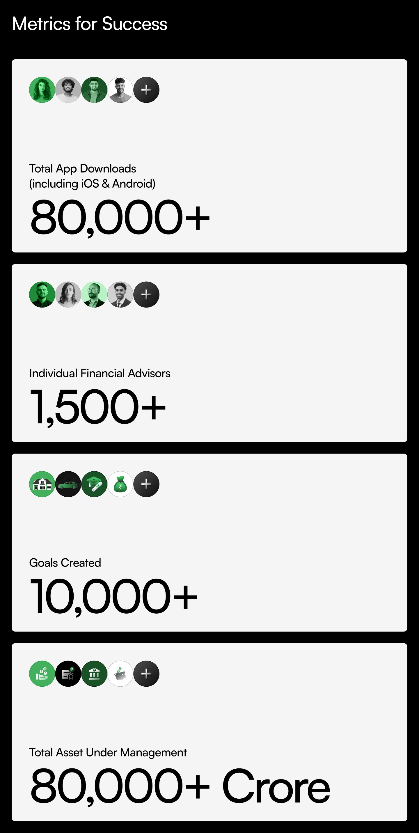 The result drove strong adoption, with 100,000+ downloads, 10,000+ goals created, 1,500+ advisors onboarded, and assets under management exceeding ₹80,000 crore.