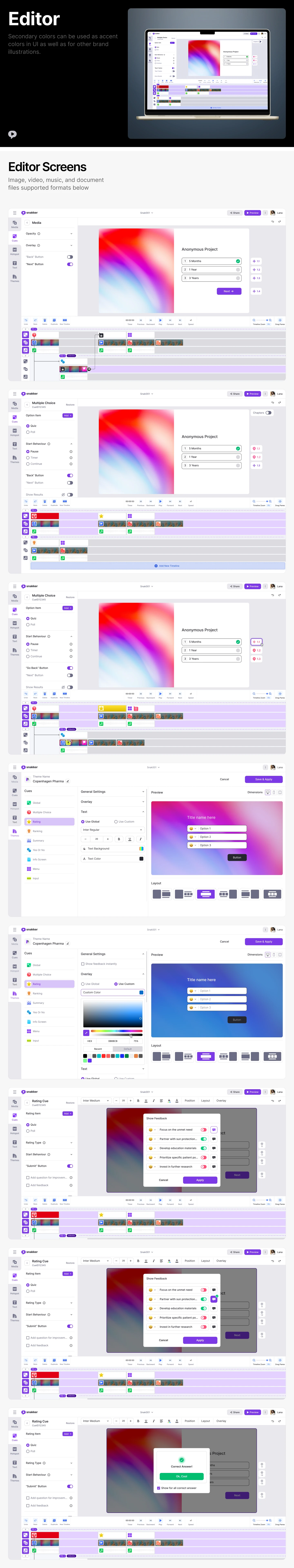I collaborated on Snakker’s end-to-end UX/UI redesign, leading the editor and website revamp to simplify Snak creation, reduce the learning curve, and improve consistency across B2B/B2C use cases. I contributed to a scalable design system, refreshed branding, and interactive prototypes in Figma, while managing stakeholders and shipping the Webflow landing and inner pages.